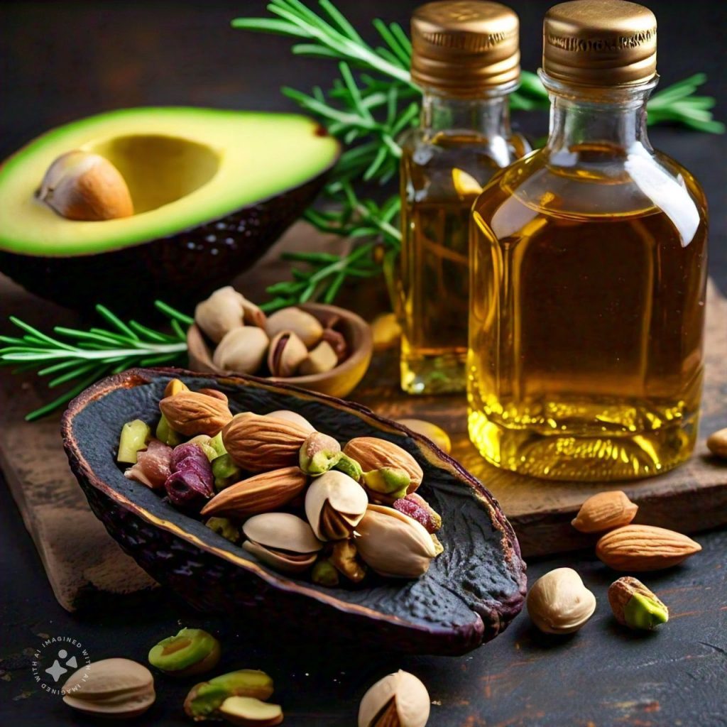 5. Healthy Fats-: Avocado, nuts, seeds, and olive oil contribute essential fatty acids.