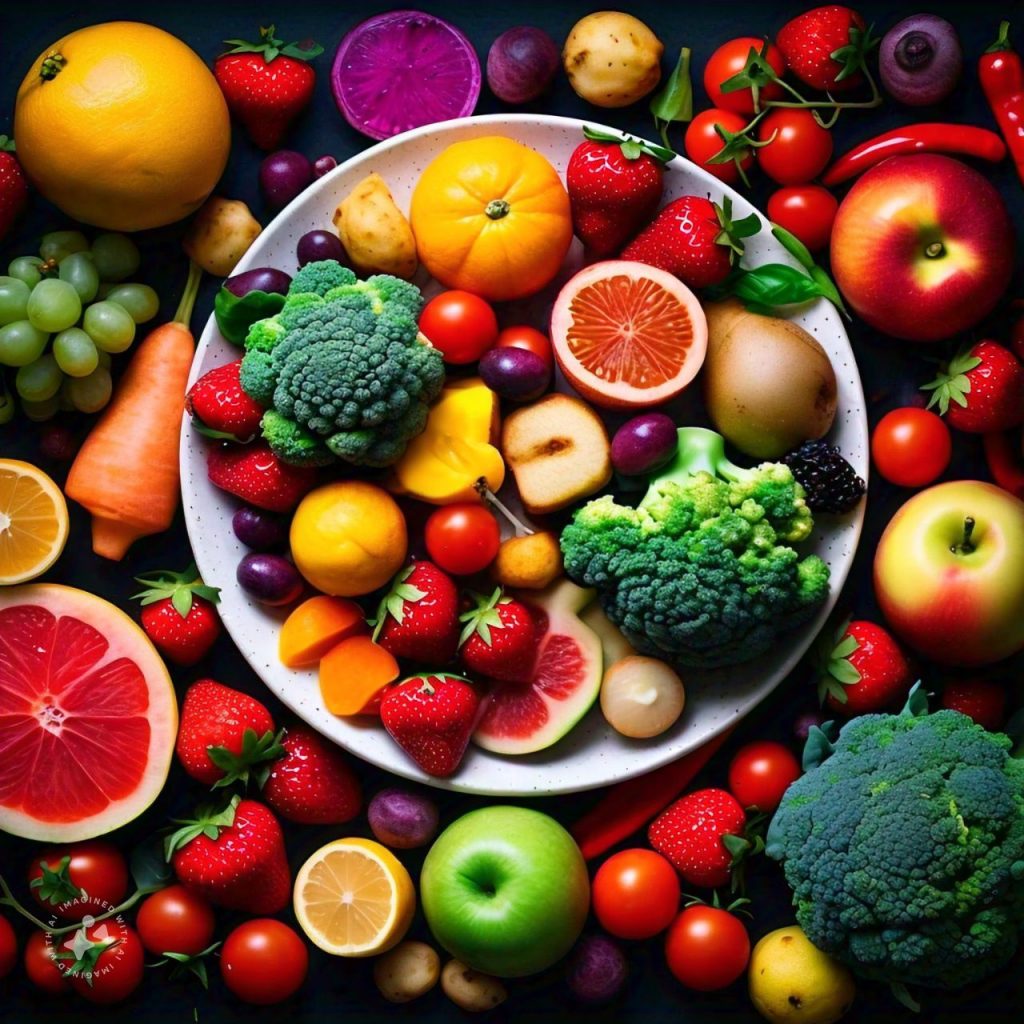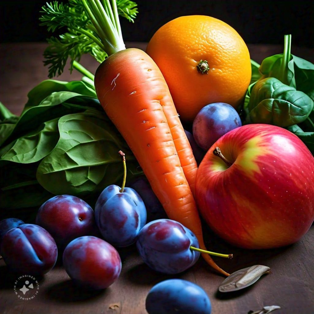 1. Fruits and Vegetables- Aim for a variety of colors to ensure a range of nutrients. Examples include berries, oranges, carrots, spinach, and sweet potatoes,apple,kiwi,watermelon,banana