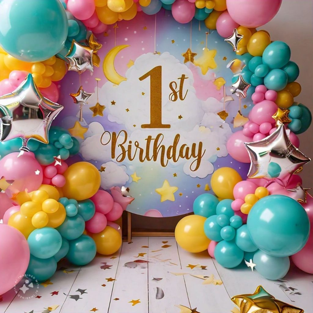 :1. STAR AND MOON-Little Star decorate with stars, moons, and soft pastel colors. Use twinkle lights to create a magical atmosphere.Use colour full baloons.Your baby will love it….