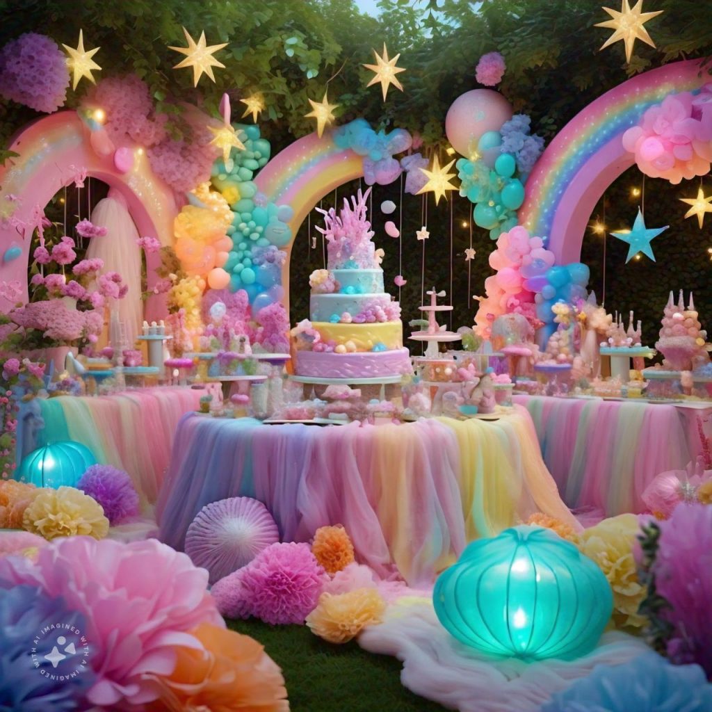 6. Rainbow PartyA colorful theme– with rainbow decorations, balloons, and a multi-colored cake. This theme is bright, cheerful,
